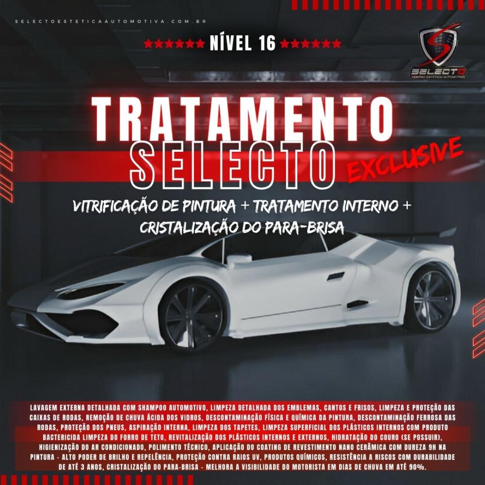 Tratamento Selecto Exclusive Vitrificação de Pintura + Tratamento Interno + Cristalização de Para-brisa